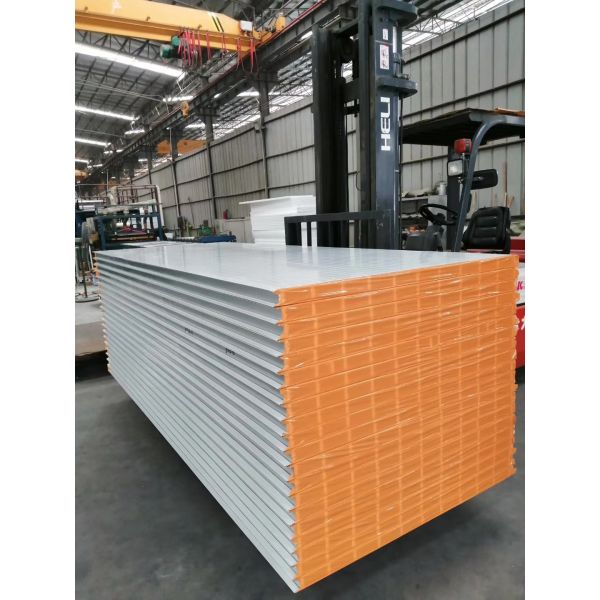 1) sandwich plate appearance, bright color, good overall effect, it sets the bearing, thermal insulation, fireproof, waterproof in one, and no two decoration, is a widely used, especially in the construction site of the temporary facilities such as office, warehouse, walls, but also embodies the modern construction site civilization construction.